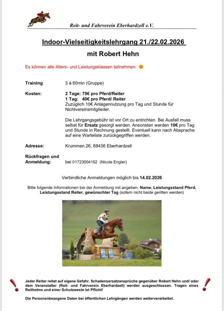 Zeiteinteilung – Vielseitigkeitslehrgang zur Turniervorbereitung mit Guido Völk am 10.+11.08.2022
